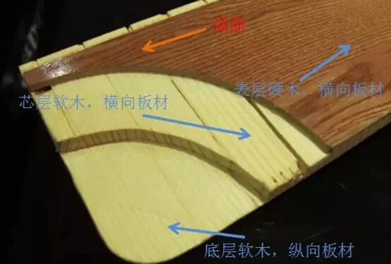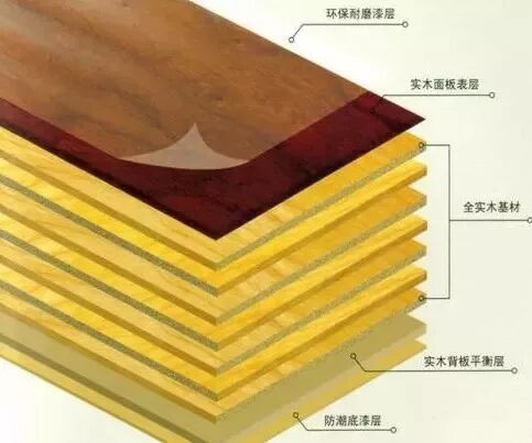 图示分别是多层实木地板和三层实木地板,类似于前面板材里讲到的多层实木板和大芯板,三层实木需要用到的胶明显的比多层要少了。